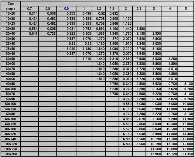 | Kategori : | Profil çeşitleri, Dikdörtgen profil |