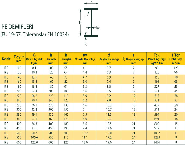 Ipe profiller, enlemesine bakıldığında yatay bir üste, alt flanşlara ve dikey bir gövdeye sahip olduğu görülmektedir. Birçok ölçü, ebat ve çeşitlerde üretilen bu ürünler, farklı gövde kalınlıklarında olabilirler. Endüstriyel ve yapısal amaçlar için biçimlendirilen yapı profiller, Ipe profil nedir? sorusunun en doğru cevabıdır. Bu ürünler yüksek oranda yapısal mukavemet sağladıkları için birçok alanda kullanıma uygun forma sahiptirler. Hüner Metal, çeşitli ölçü ve ebatlarda Ipe profil ürünleri ile yüksek kaliteyi harmanlayarak hizmetinize sunmaktadır.