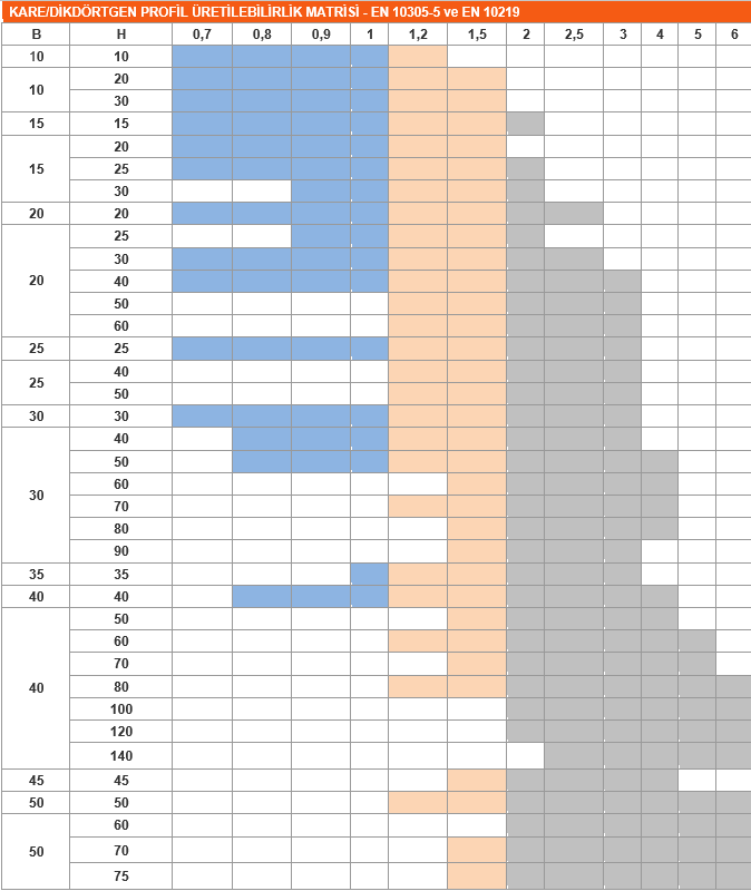 | EN 10219-1/2 - CE BELGELİ | S235JRH, S235J0H, S235J2H S275JRH, S275J0H, S275J2H S355JRH, S355J0H, S355J2H, S355K2H |