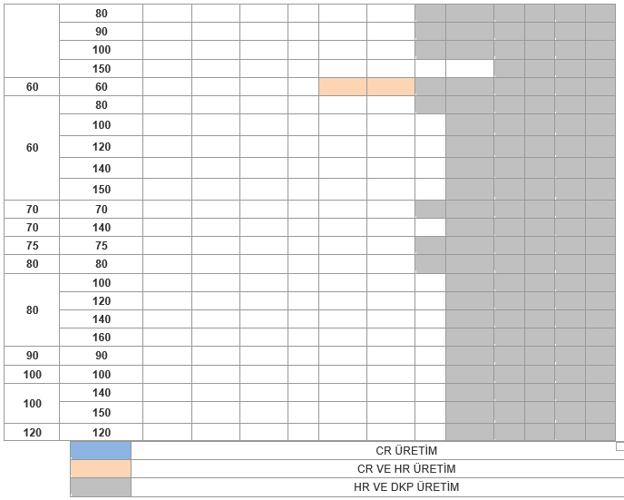 Üretim Aralığı: 10x10 mm – 120x120 mm
